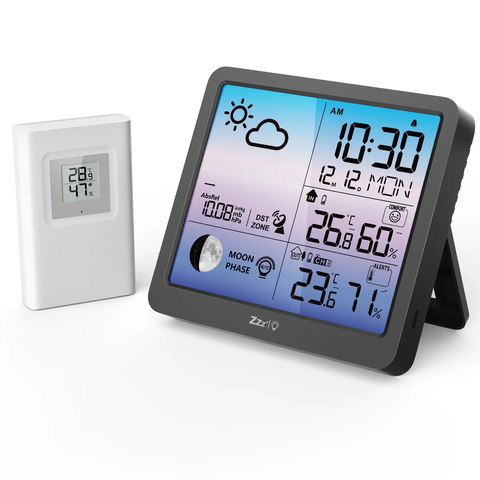 Ultima grande Display LCD temperatura e umidità di misurazione meteo orologio intelligente digitale stazione meteo